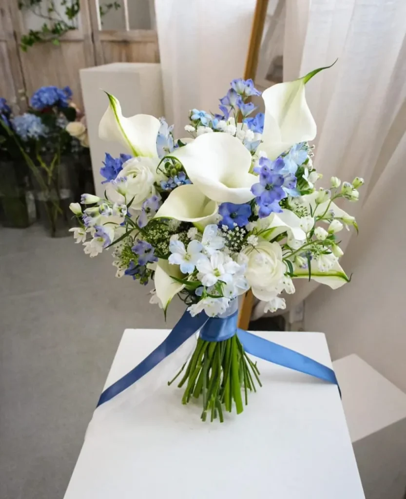 - Mermaid Dress: A sleek calla lily bouquet enhances the silhouette.