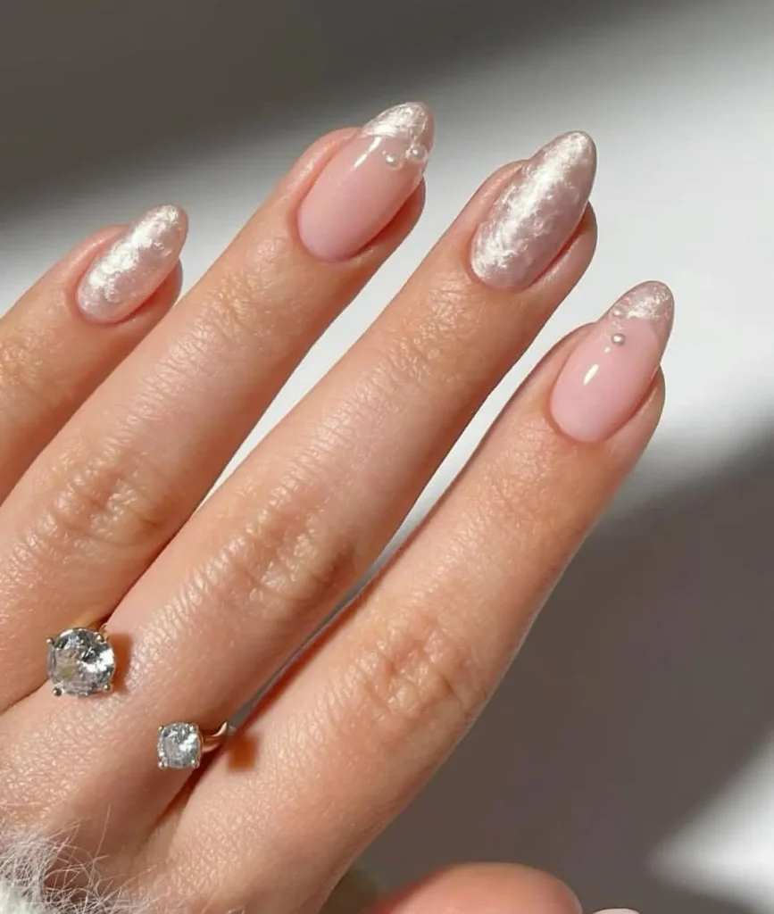 Classic styles never go out of fashion. Think of French tips, pale pinks, or a simple glossy nude. These wedding nails look timeless and elegant, matching almost any gown and jewelry style.