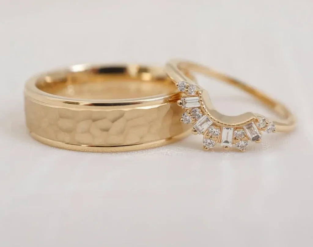 In recent years, wedding ring styles have become more diverse. Classic gold wedding bands remain a popular choice because of their simplicity and elegance. Many couples also prefer platinum wedding rings for their durability and sophisticated appearance. White gold has also gained popularity for its modern and versatile look, appealing to those who want something a bit different from traditional yellow gold.